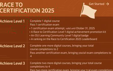 These certifications are only available for free for a short period. Register now through Oracle University and begin your journey toward becoming Oracle Certified.