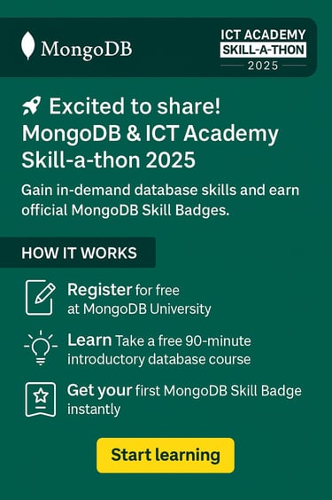 Whether you're just starting your coding journey or want to level up your backend skills, MongoDB & ICT Academy Skill-a-thon 2025 is your gateway to professional development. It's free, flexible, and future-focused.