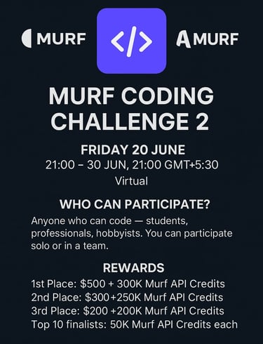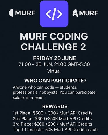 Murf Coding Challenge, online coding contest, Murf API rewards, June 2025 hackathon